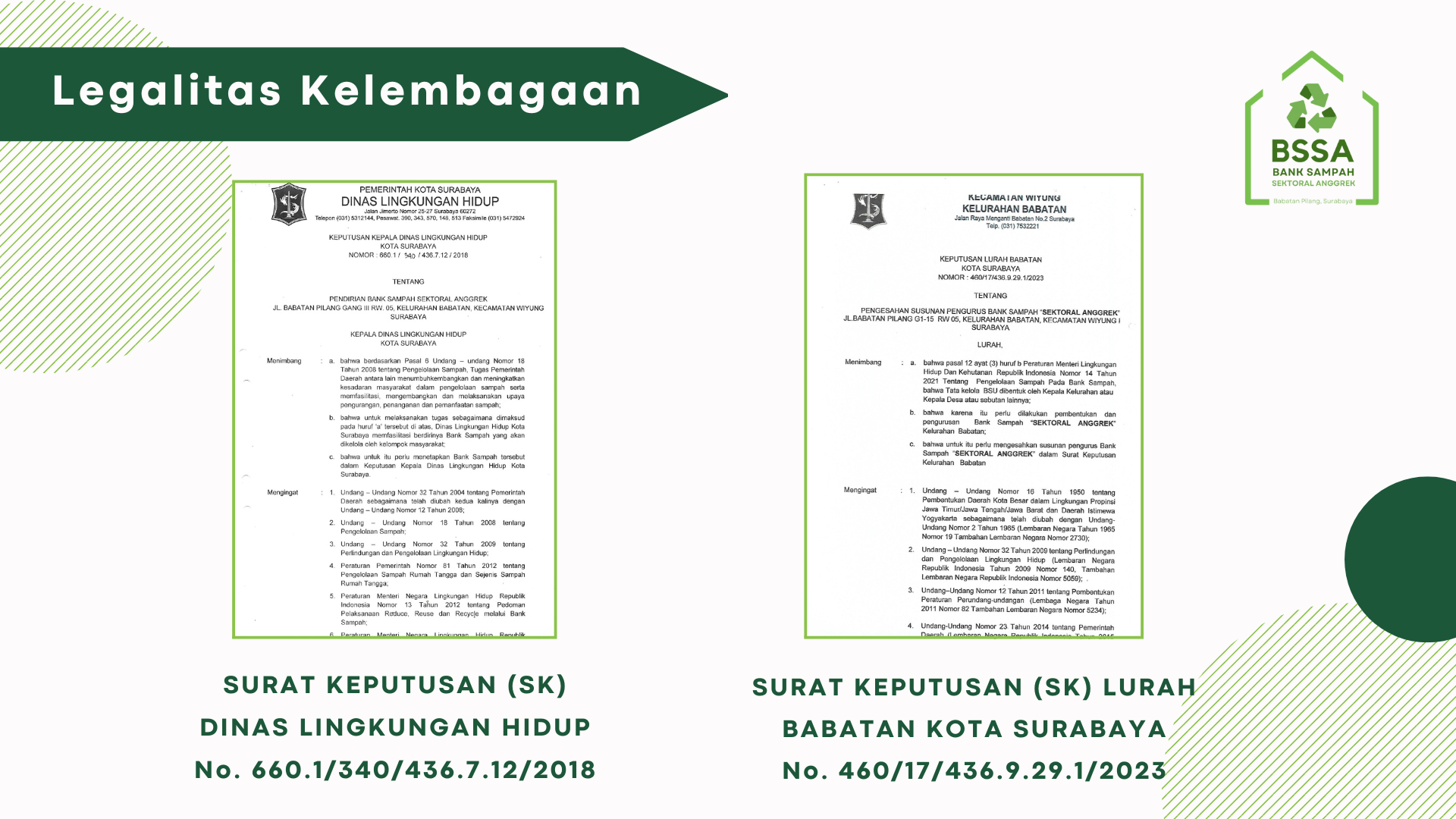 Bank Sampah Sektoral Anggrek (BSSA) didirikan pada tahun 2014 atas inisiatif Ketua RW 5 Babatan Pilang saat itu, Bapak Johny Sunaryo,